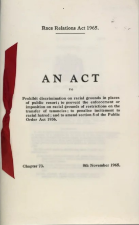 Despite resistance, the Bill passed. In August 1965, the Race Relations Act made it illegal to deny service in public places such as hotels, pubs, restaurants and transport on the grounds of race, colour or ethnic origin. It also outlawed the publication of material likely to incite racial hatred.